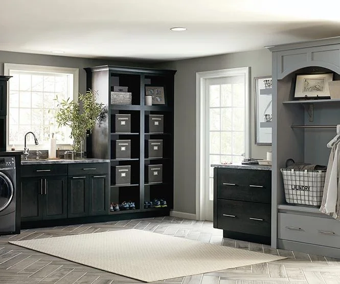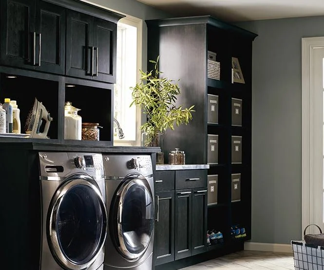 Who says a laundry room can't be chic? Savvy home owners are re-imagining basement laundry rooms as clothing care areas with plenty of room for sorting, washing, drying, mending, and seasonal storage. These beautiful cabinets and storage units make laundry duties much more enjoyable.